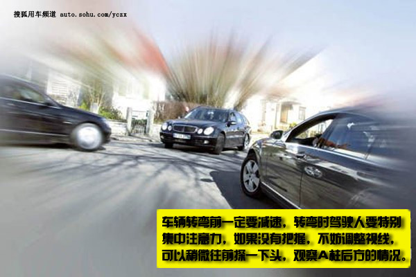 应对方法:车辆转弯前一定要减速,转弯时驾驶人要特别集中注意力,如果没有把握,不妨调整视线,可以稍微往前探一下头,观察A柱后方的情况。倒车前,最好先观察车子周围的情况,对于习惯扭头倒车的驾驶人来说,必须同时观察车外后视镜。