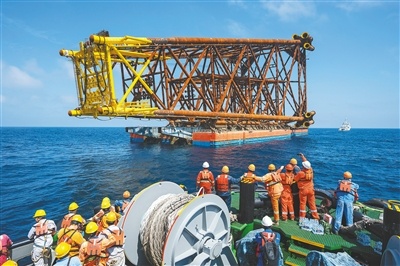 海南海域高度最高海洋油气平台导管架安装就位
