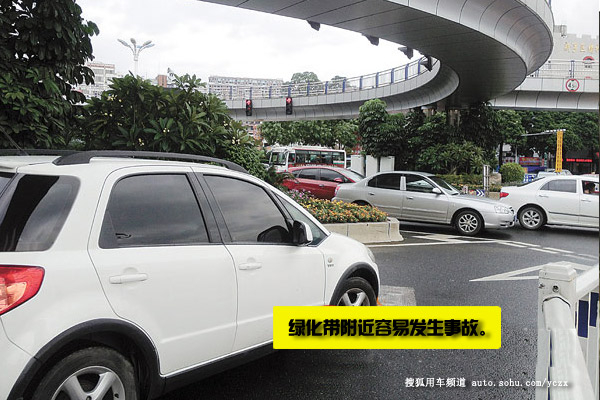 绿化带附近之所以易有事故,是因为一方面车辆行驶轨迹发生变化,一方面绿化带以及路边停车也使得双方视线进一步受阻。